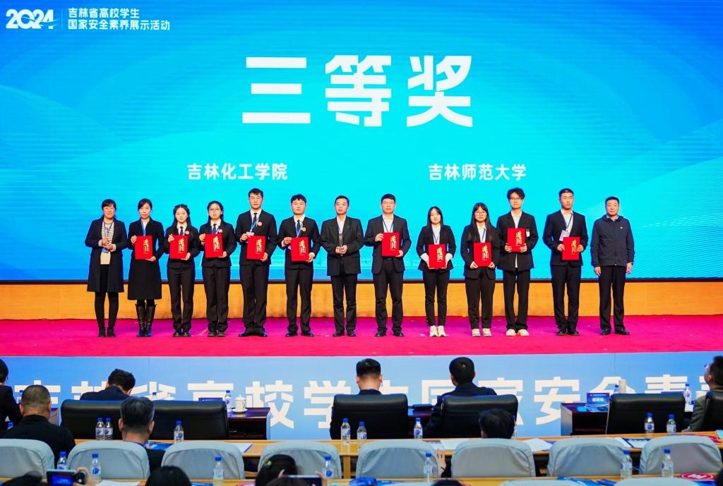 4月14日,由吉林省教育厅主办的2024年吉林省高校学生国家安全素养展示活动决赛在吉林大学东荣报告厅举行。全省40所高校同场竞技,经过“有问必答、一站到底、安全公开课等环节的激烈角逐,我校学生最终取得吉林省“三等奖”的好成绩,学校荣获“优秀组织奖”与“优秀奖”。