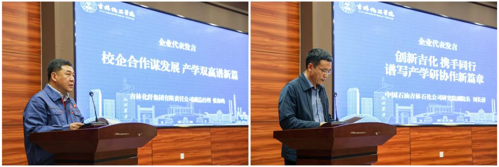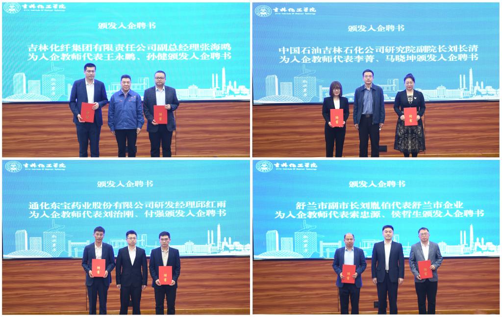会上,学校博士专家代表、基层单位代表和重点企业代表依次进行发言,各位代表结合政校企融合工作实际,围绕科技创新、平台建设、人才培养等方面进行了经验交流。并由对接企业代表为吉林化工学院博士专家代表颁发入企聘书。