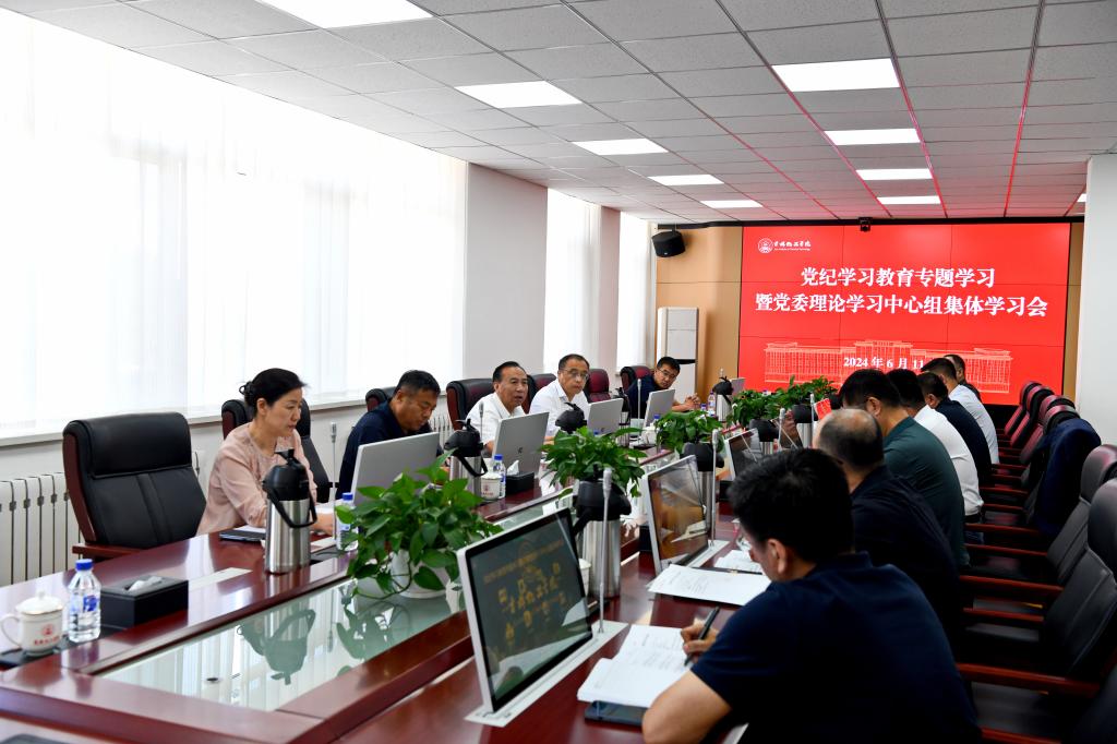 6月11日,学校召开党纪学习教育专题学习暨党委理论学习中心组集体学习会,学习习近平总书记关于党的自我革命的重要思想。党委书记宋春辉主持学习会。