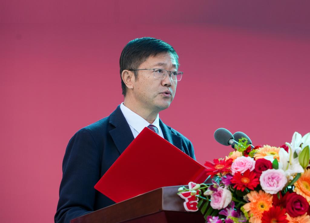 艾学忠代表学校对4000余名2024级新同学的到来表示热烈的欢迎,并提出三点希望:一是胸怀“国之大者”,践行青春使命。要坚定理想信念,树立远大目标,将“青春小我”融入“时代大我”,在胸怀家国中勇担使命,把为祖国富强、为人民幸福而奋斗的深厚情感贯穿于学业的全过程,以青春之我、奋斗之我为国求学,争做新时代的奋斗青年,努力为强国建设注入更加澎湃的青春力量。二是练就“专业本领”,积蓄青春能量。要着重培养自我学习能力、独立思考能力、科研创新能力,在学习中寻觅快乐、探寻真谛,在思考中寻求答案、发现真理,以扎实的学识和深厚的学养筑牢未来成长根基。三是涵养厚德正气,拓展青春格局。要“承乾坤之正气,立天地之威仪”,注重培养良好的道德品质和行为习惯,磨砺意志品质,培养高尚情操,自觉做社会主义核心价值观的坚定信仰者、积极传播者、模范践行者,把正确的道德认知、自觉的道德养成、积极的道德实践紧密相结合,不断修身立德、打牢道德根基,持之以恒,奋斗不息,努力成为担当民族复兴大任的时代新人、德智体美劳全面发展的社会主义建设者和接班人。