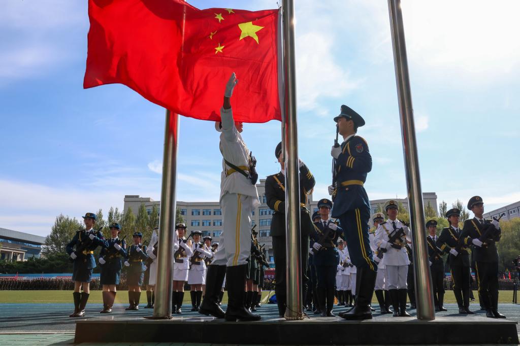 大会在雄壮的国歌声中拉开帷幕,五星红旗伴着庄严的旋律冉冉升起。