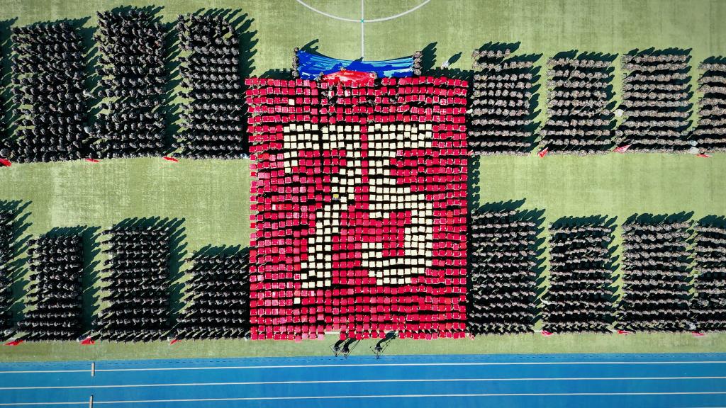 典礼现场,5名2024年退役大学生士兵代表向母校报到,上演最帅“换装”,英姿飒爽向全场行军礼,赢得热烈掌声。
