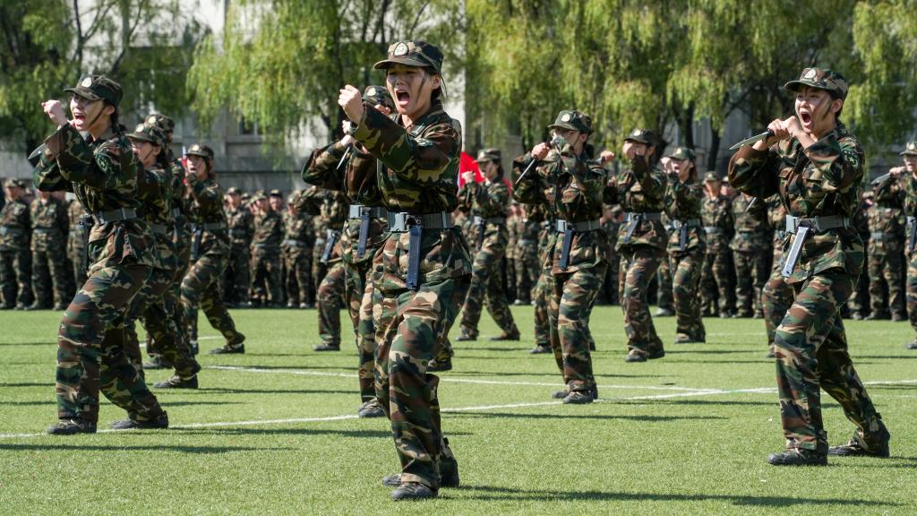 在雄壮的检阅进行曲中,2024级新生进行了分列式会操表演。国旗护卫队、35个连队方阵迈着矫健的步伐,以整齐划一的队列依次通过检阅台,口号嘹亮,精神饱满,在随后进行的应急棍、格斗术、千人军体拳表演科目表演中,贯耳、砸肘、摆勾……拳法行云流水;刺闪、挥劈、格挡……尽显青春风采,收获了现场师生阵阵掌声。