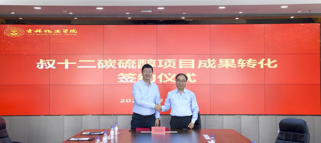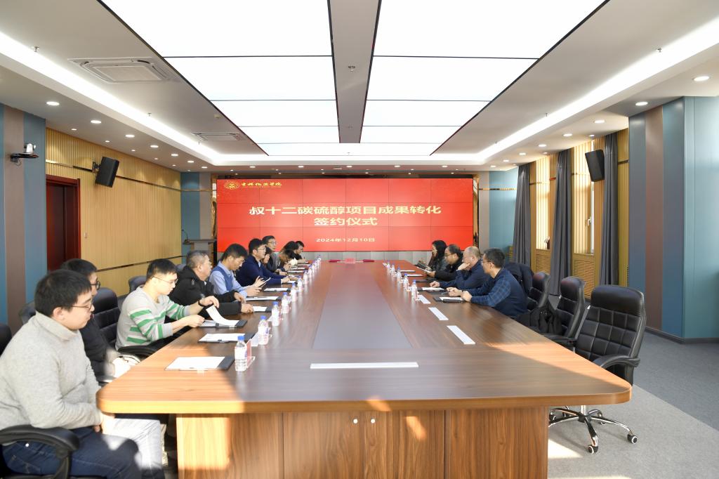 12月10日,叔十二碳硫醇成果转化签约仪式在我校举行。此项成果是受大庆中蓝石化有限公司委托开发的新型、环保、高效的叔十二碳硫醇制备工艺。此次签约标志着学校科技创新与产业发展深度融合进入了一个新的阶段。学校党委常委、副校长孙大志与大庆中蓝石化有限公司总经理刘风云代表签约。