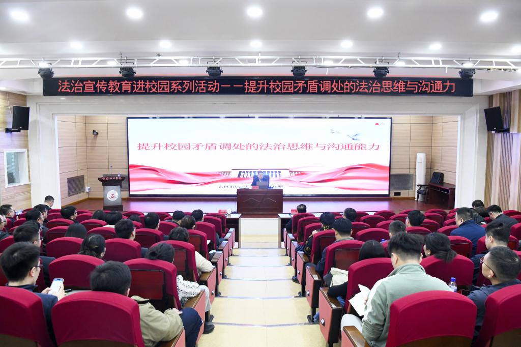 为深入贯彻落实党的二十大、党的二十届三中全会精神,深化依法治校实践,学校于4月10日举办“法治宣传教育进校园系列活动——提升校园矛盾调处的法治思维和沟通能力”专题讲座。邀请吉林市信访局副局长田野主讲,学校党委副书记李士阳参加活动。