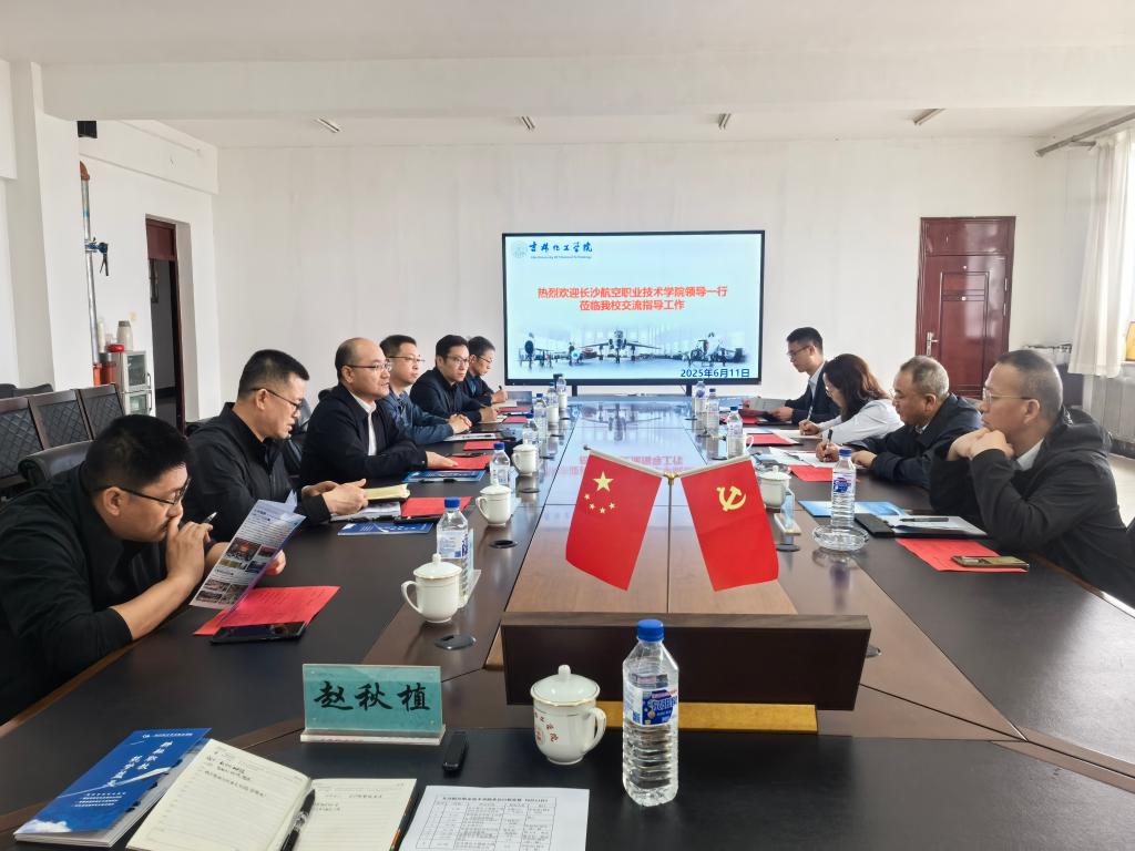 6月11日,学校党委书记宋春辉会见了来校调研的长沙航空职业技术学院党委书记朱国军一行。双方围绕“十五五”发展规划、专业建设、航空与人工智能融合、教学科研创新、师资队伍建设、校企合作与就业等方面开展深入交流。学校党委常委、副校长王立国参加活动。