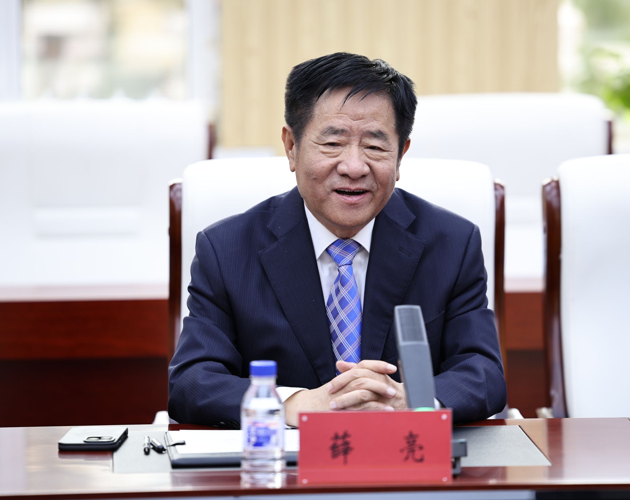 艾学忠代表学校对薛亮一行来访表示欢迎。他指出,吉林化工大学作为吉林省唯一一所化工类高等工科院校,学校始终以服务区域产业发展为己任,此次合作既是对“校地战略联姻”成果的深化,更是推动化工产业高端化、绿色化发展的具体实践。学校将以协议为框架,进一步开放分析测试共享平台、优化人才培养体系,推动更多技术成果从“实验室”走向“生产线”,为企业发展注入高校智慧,为区域产业升级贡献教育力量。他强调,设立奖学基金是深化“教育链-人才链-产业链”融合的重要纽带。就业奖学基金不仅激励学生深耕专业领域,企业还将接收获奖学生参与生产实践,实现“学业-就业”无缝衔接。未来学校将继续拓展合作领域,深化合作内涵,在科技创新、人才培养和平台建设等方面持续深耕,打造校企协同创新典范。