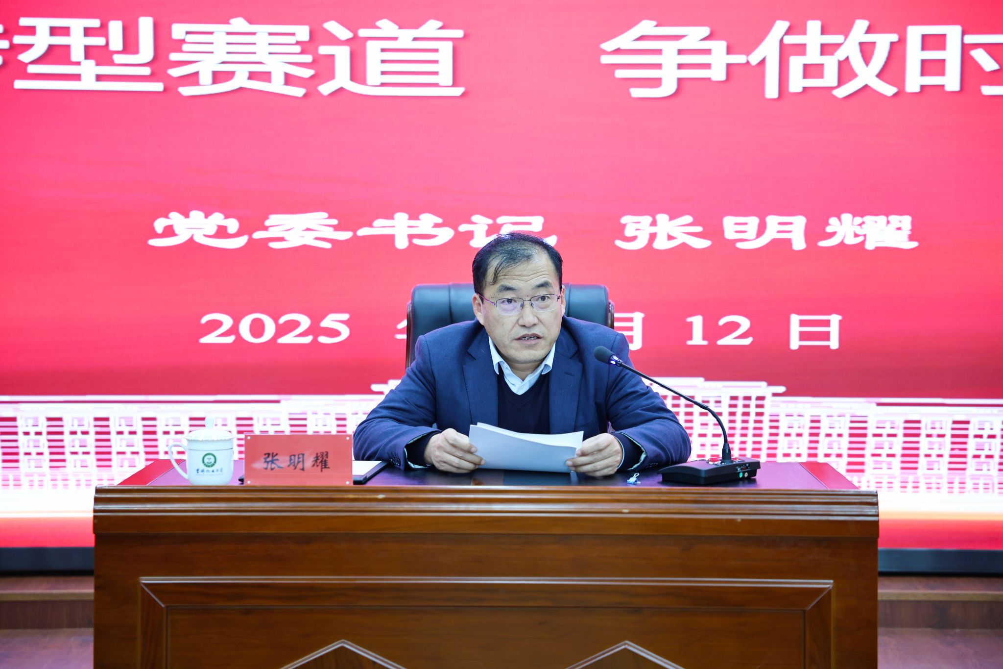 11月12日,学校党委书记张明耀讲授专题党课暨思政课,围绕“深学笃行党的二十届四中全会精神 锚定产业转型赛道 争做时代青年先锋”主题,引领学校2025年青马工程学员深入学习贯彻党的二十届四中全会精神,切实提升政治素养、理论水平和担当能力。