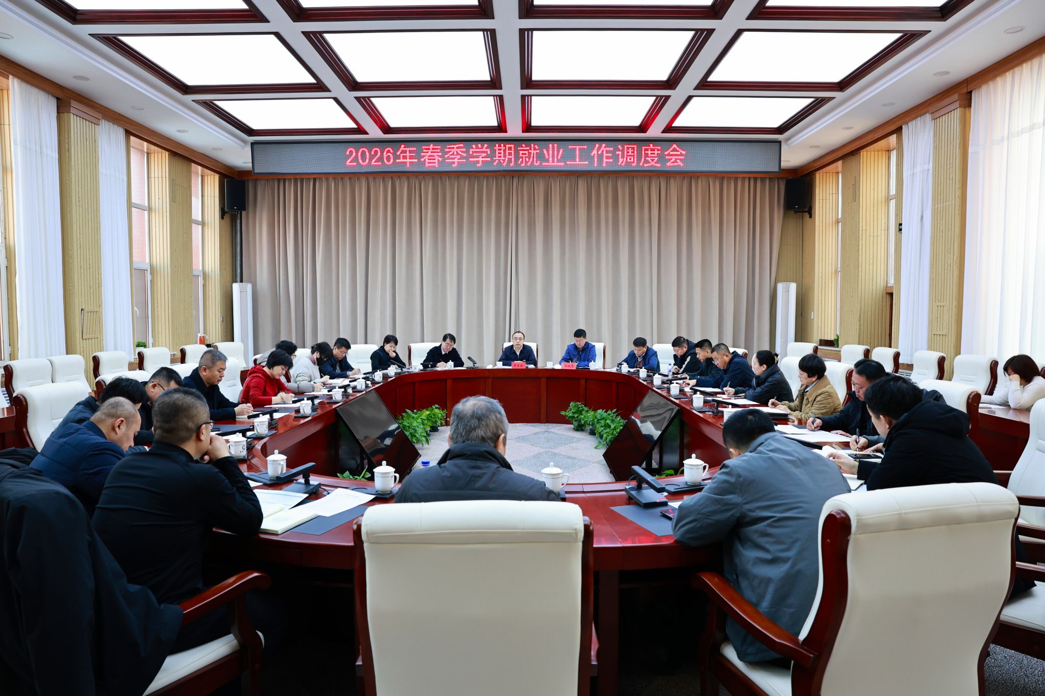 3月12日,学校召开2026年春季学期就业工作调度会,深入分析当前就业形势,总结寒假以来工作进展,部署下一阶段重点任务。学校校长艾学忠出席会议并讲话,党委常委、副校长孙大志主持会议。