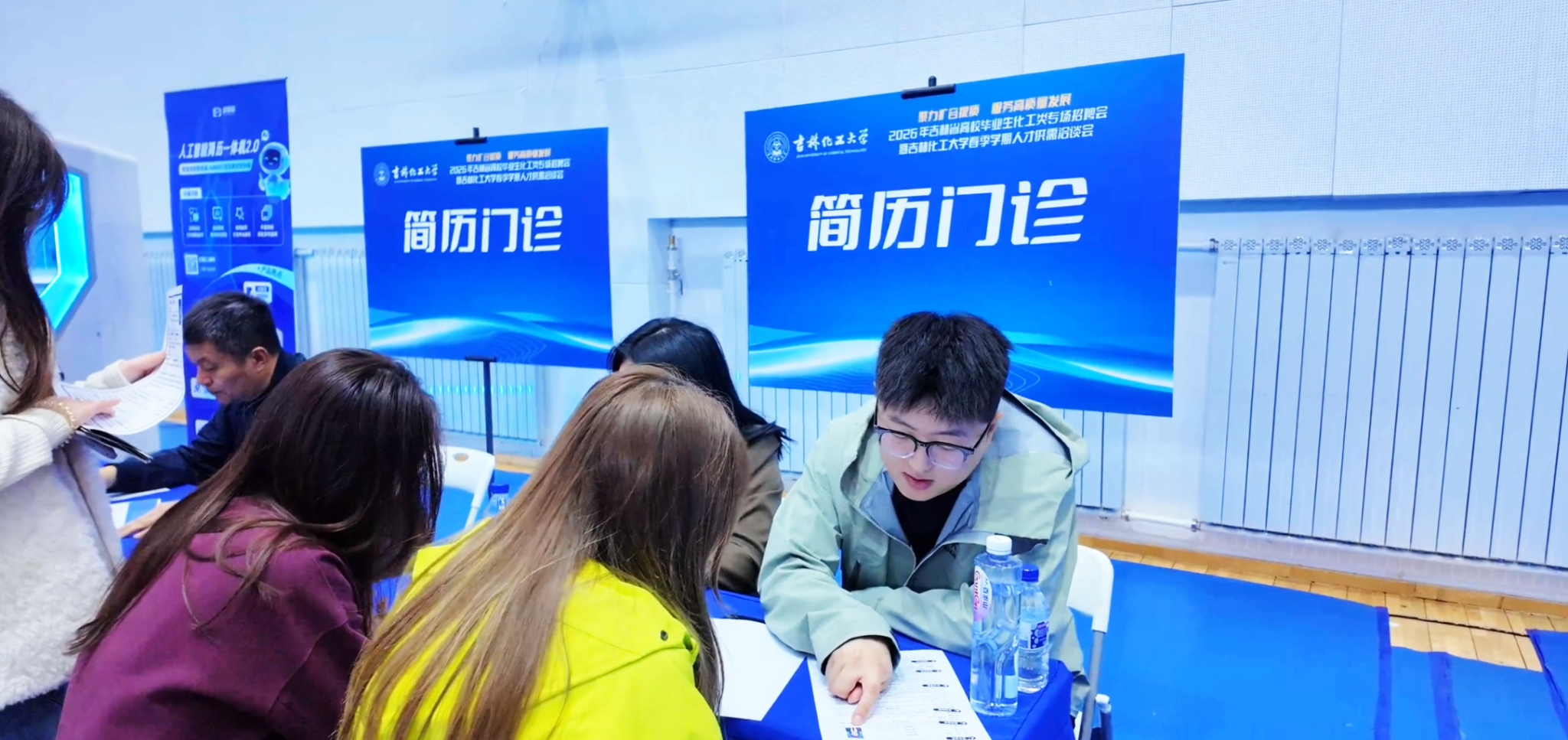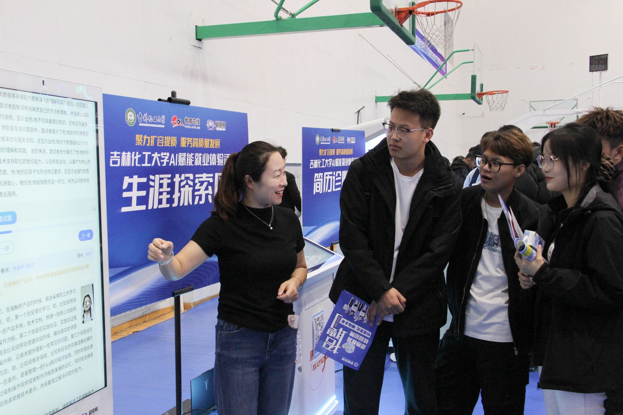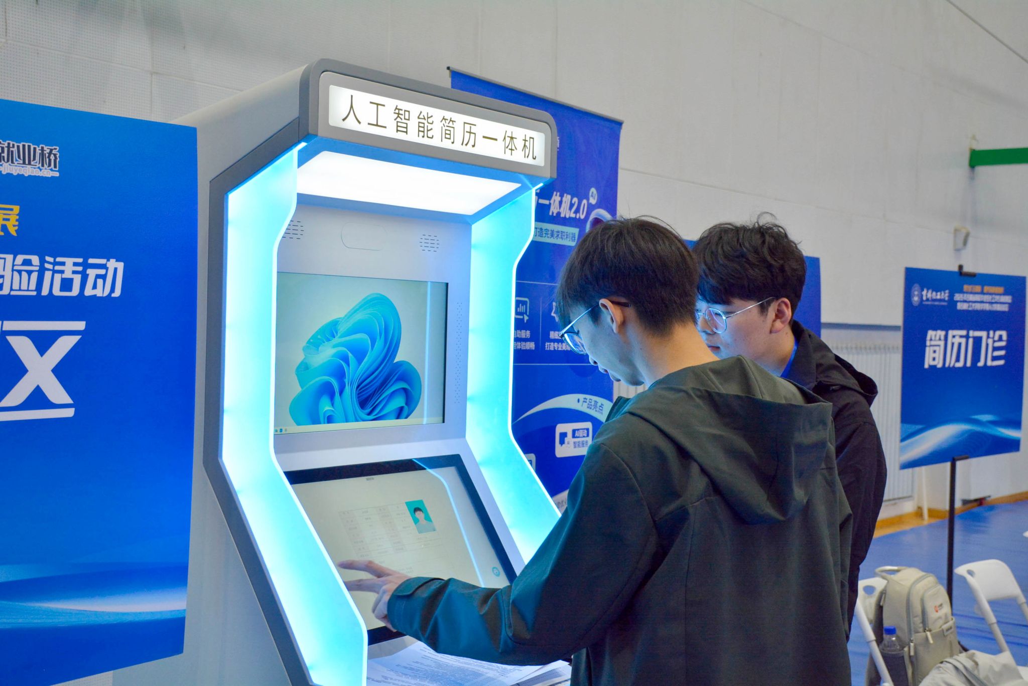 同期举办的“吉林化工大学AI赋能就业体验活动”成为本次招聘会的一大亮点。大会为毕业生提供专属“生涯探索一体机”“AI简历打印一体机”“AI面试模拟一体机”,吸引了众多学生驻足体验。同学们通过AI技术现场修改简历、模拟面试,沉浸式感受科技为就业赋能的便捷与高效。