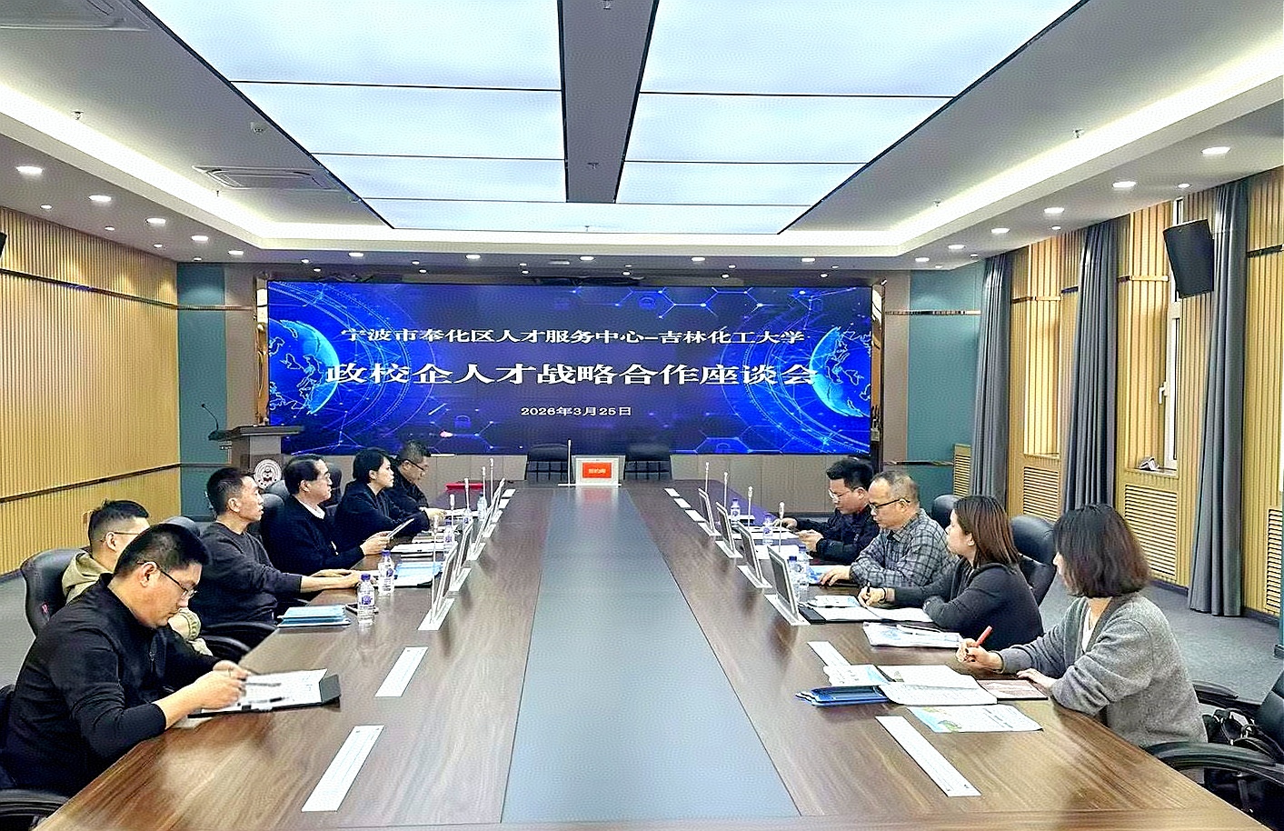 当日下午,宁波市奉化区人才服务中心与学校举行“政校企人才战略合作座谈会”。会上,双方围绕人才联合培养、实习基地建设、产学研合作等议题进行了深入交流。宁波市奉化区人才服务中心、宁波市奉化区人才发展有限公司、宁波市奉化区汽车零部件行业协会分别与吉林化工大学签署人才战略合作框架协议。此次签约标志着双方在人才供需对接、校企协同育人方面迈出了实质性一步,为学校毕业生开拓了更广阔的就业空间。